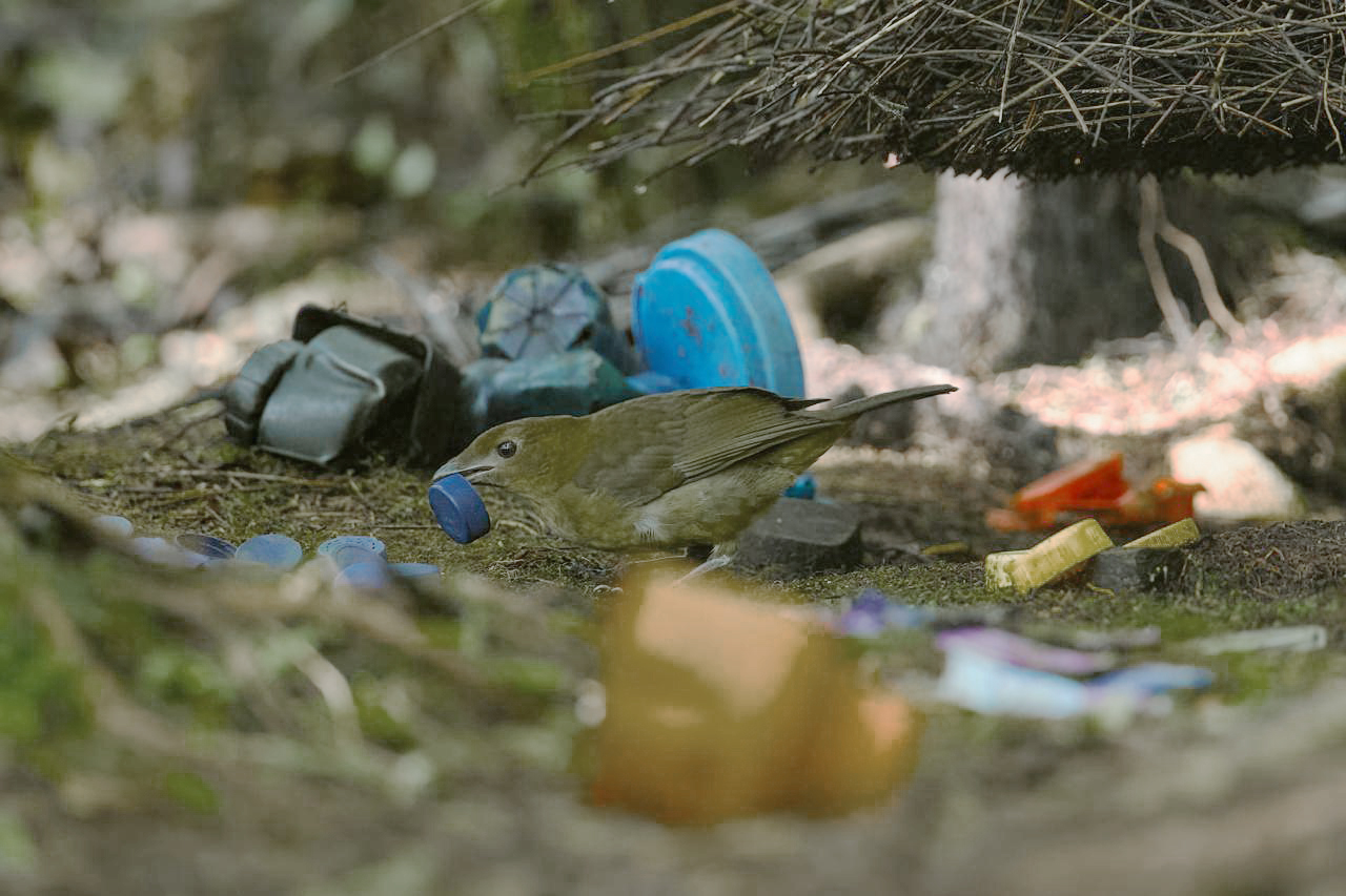 remove human waste, and work with local communities so that these birds can once again build their bowers entirely from natural materials.